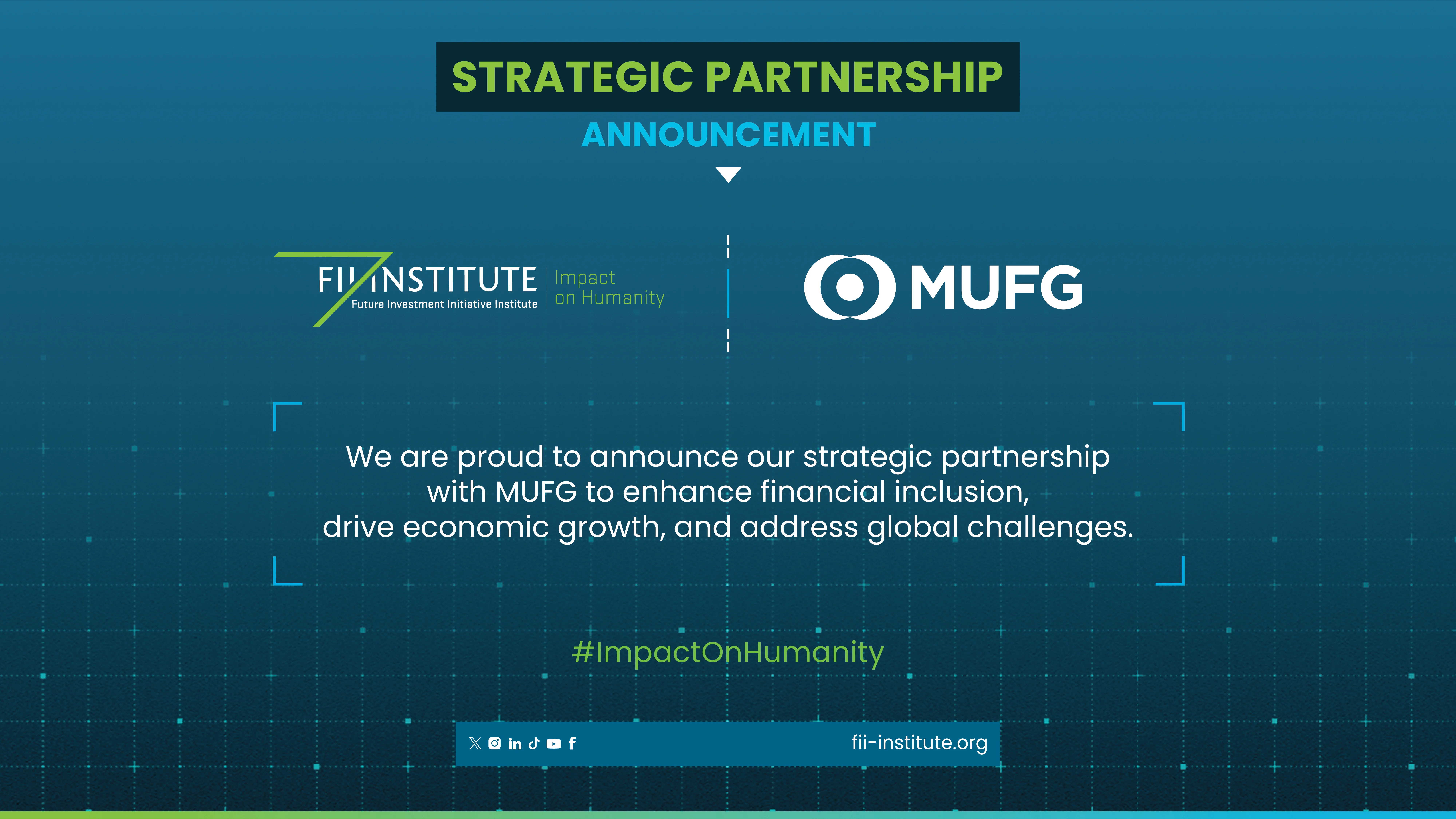 Kanetsugu Mike, Chairman, MUFG, said: “We are honored to join the FII Institute as Strategic Partner for the FII 9th Edition in Riyadh and Presenting Partner for the FII PRIORITY Asia Summit in Tokyo. At MUFG, we believe finance plays a critical role in shaping a more sustainable future. This partnership reflects our commitment to driving positive impact through innovation, collaboration, and responsible growth. We look forward to contributing to the Institute’s global platform and advancing solutions that serve society and promote long-term prosperity.”